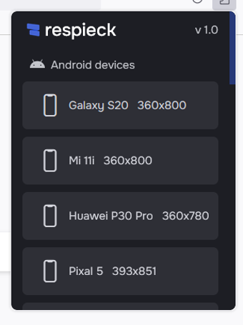 Respieck - Responsive Tester является важным инструментом для веб-разработчиков, стремящихся обеспечить адаптивность своих дизайнов на различных устройствах. Это расширение для Firefox позволяет пользователям без труда переключаться между различными представлениями устройств, от мобильных телефонов до больших настольных экранов, что упрощает оценку того, как веб-сайт или приложение будет выглядеть на разных платформах. Его удобный интерфейс улучшает навигацию, делая его доступным как для опытных разработчиков, так и для новичков.